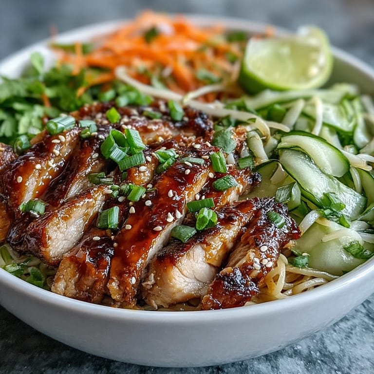 - Fresh vegetables (carrot, cucumber, bell pepper, bean sprouts, spring onions): The raw freshness is essential here—it's the contrast to the warm chicken and sauce that makes this bowl sing.