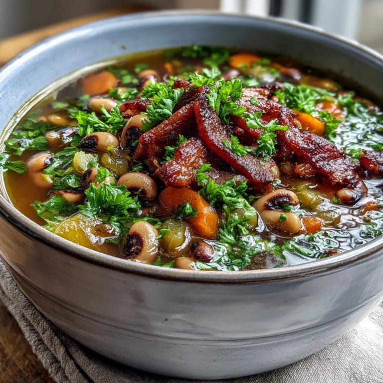 Pin It There's something about the way bacon fat catches the light in a soup pot that makes you feel like you're doing something right in the kitchen. My grandmother would stand at her stove on cold mornings, the smell of smoky bacon filling her tiny kitchen, and I'd wander in wondering what magic was happening. This black-eyed peas and bacon soup became my answer to that question, a dish that feels like an embrace in a bowl. It's the kind of soup that transforms simple ingredients into something that tastes like it took hours, when really it's just an honest hour of your time. The first time I made it for friends, nobody left hungry or unsatisfied.