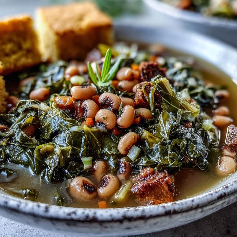 Pin It My grandmother used to say that black-eyed peas and collard greens were proof that soul food didn't need to be complicated to be unforgettable. One New Year's Eve, watching her stir that pot with the kind of patience only time and tradition can teach, I realized she wasn't just cooking dinner—she was passing down something that tasted like home and luck wrapped together. The kitchen filled with the smell of smoked paprika and simmering broth, and suddenly I understood why this dish had survived generations. Now, whenever I make it, I'm cooking alongside that memory, and something always feels right about it.