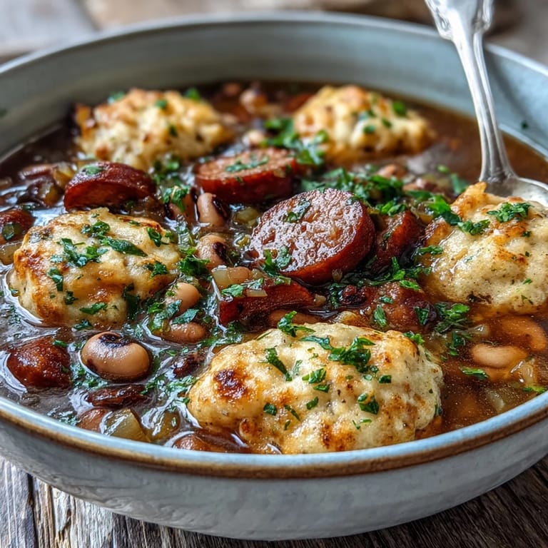 Pin It There's something about the sound of sausage hitting hot oil that signals comfort is coming. My neighbor brought over a pot of this exact dish on a particularly gray Tuesday, and the steam that rose when she lifted the lid seemed to brighten the whole kitchen. Those fluffy dumplings floating on top of the dark, savory broth felt like a hug in a bowl, and I spent the rest of that evening trying to recreate it from memory and half-guessed measurements.