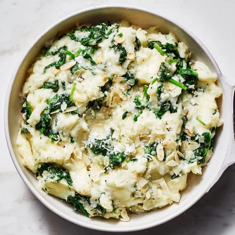 Pin It I was halfway through mashing potatoes one Tuesday when I spotted a bag of spinach wilting in the crisper. Instead of tossing it, I threw it in with some garlic and butter, and what came out of that pot was something I never expected: creamy, vibrant, and just a little indulgent. My sister tasted it and said it was the only way she'd eat mashed potatoes from then on. That small kitchen save became a staple I now make on purpose, not by accident.