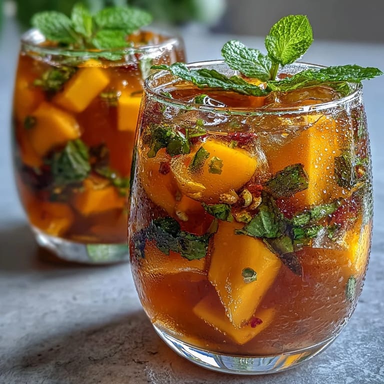 Pin It There's something about that first sip of homemade iced tea on a warm afternoon that stops time for a moment. My neighbor surprised me with her version of mango peach tea last July, and I remember standing on her porch, the condensation dripping down the glass while she told me she'd spent the morning at the farmer's market hunting for the perfect peaches. That simple gesture sparked something—I became obsessed with recreating it, tweaking the ratios until the mango and peach sang in equal measure, with mint whispering underneath like a secret.