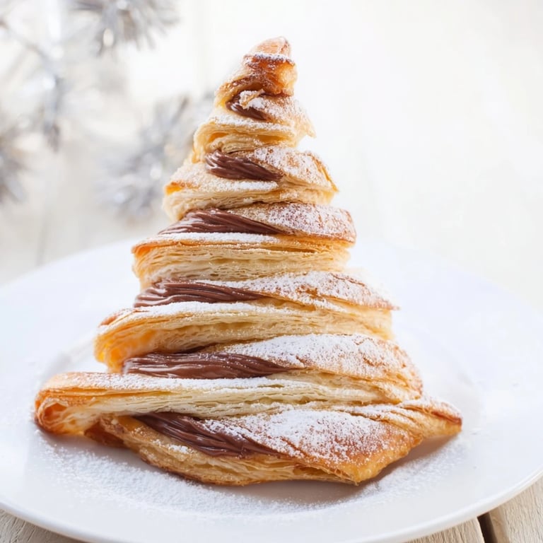 Pin It Last December, my kitchen smelled like butter and toasted hazelnuts before the sun even came up. I was rolling out cold puff pastry on the counter, still half asleep, trying to make something that looked festive without spending all morning on it. My daughter wandered in, saw the Nutella jar, and asked if we could make trees instead of stars. I didnt have a cutter, so I freehanded the shapes with a knife, and they turned out lopsided but charming. We twisted the branches together, brushed them with egg, and watched them puff up golden in the oven—suddenly, breakfast felt like Christmas.