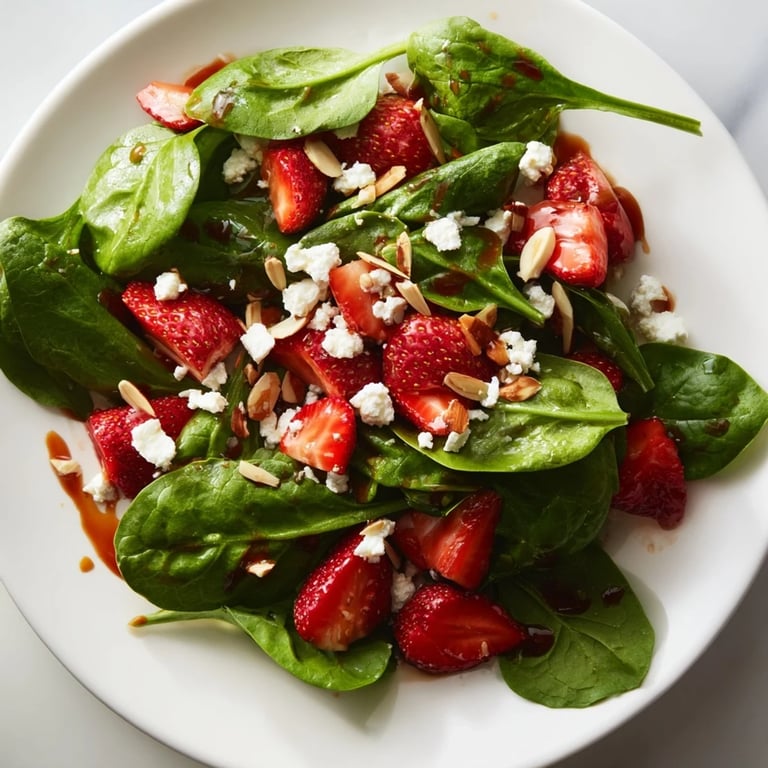 Pin It There's something about the first warm day of spring when I crave something bright and alive on my plate. I was standing in the farmer's market, overwhelmed by the strawberry stand, when an older woman next to me picked up a pint and said, "These are so good, I don't even cook them." That afternoon, I tossed those berries with some spinach I had lingering in the fridge, crumbled some feta, and made a vinaigrette without really thinking about it. It became the salad I make constantly now, the one that tastes like the exact moment when winter finally lets go.