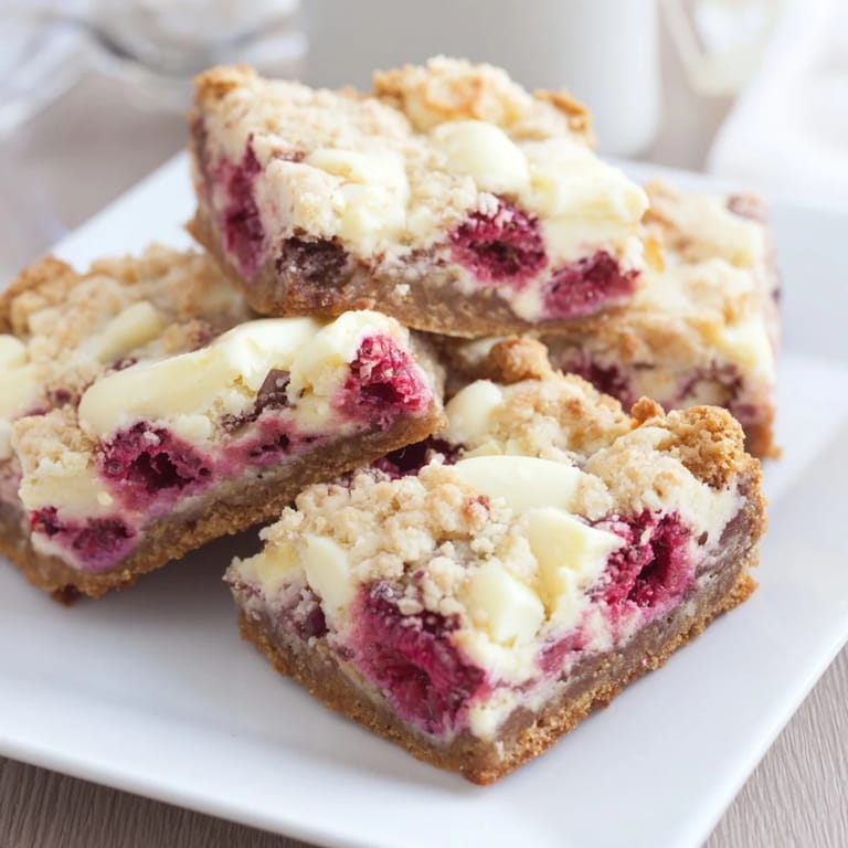 Pin It I baked these blondies on a rainy Saturday when I needed something sweet but didn't want the heaviness of brownies. The white chocolate melted into puddles, and the raspberries turned jammy at the edges. My kitchen smelled like a bakery, and I ate two warm from the pan before I could stop myself.